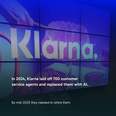 Klarna is the cautionary tale here, and it's a useful one because the initial results were genuinely good. February 2024: their AI handled 2.3 million conversations, resolution time dropped from 11 minutes to 2, satisfaction matched human agents. Impressive stuff.